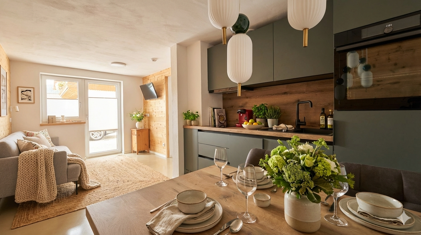 Das Apartmenthaus 4 Jahreszeiten wurde 2025 vollständig neu renoviert, hochwertig isoliert und komplett neu eingerichtet. Beheizt wird das Haus nachhaltig über Geothermie (Erdsonden bis ca. 150 m Tiefe). Natürliche Materialien, moderne Technik und eine starke Dämmung sorgen das ganze Jahr über für ein angenehmes Raumklima.