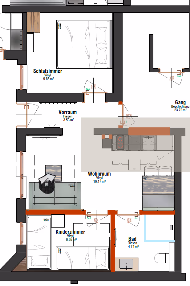 Unser Apartment Zirbe steht ganz im Zeichen von Wärme und natürlicher Behaglichkeit. Das Schlafzimmer ist mit einem komfortablen Boxspringbett ausgestattet und teilweise mit Zirben-Vollholz verkleidet. Zusätzlich gibt es ein separates Kinderzimmer sowie einen offenen Wohn-Essbereich mit Küche, Couch und TV. Schlaf- und Wohnraum erreichen Sie über einen zentralen Vorraum mit praktischer Garderobe, das moderne Badezimmer rundet den Wohnkomfort ab.